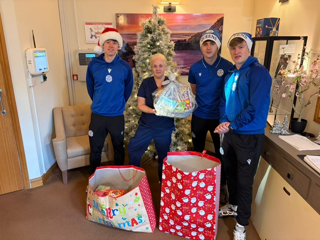 U19 Captain, Taylor Davidson along with vice captains, Callum Hill and Reilly Dillon then took the time to go to Charnwood Lodge and Alanbank to hand over the hampers and gifts.